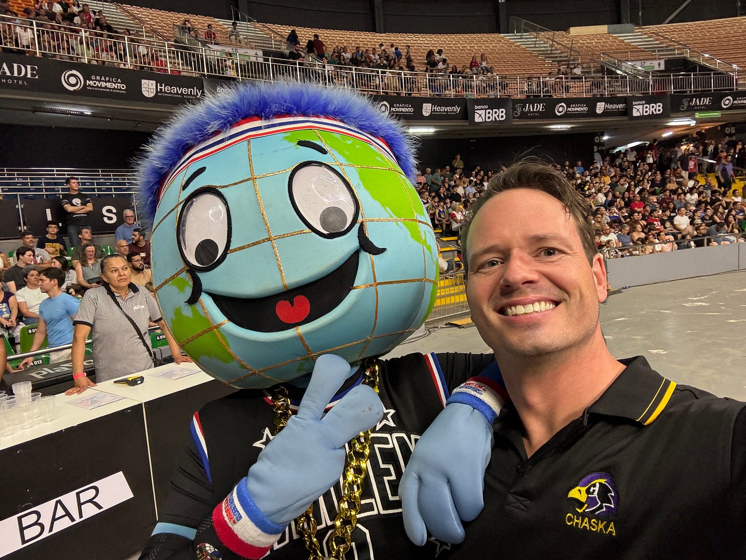I went to my first-ever Harlem Globetrotters game this weekend to celebrate my birthday. I got to hang out with Globie the mascot before the game, as you can see below. One of the coolest experiences I’ve had in a while - highly recommended.